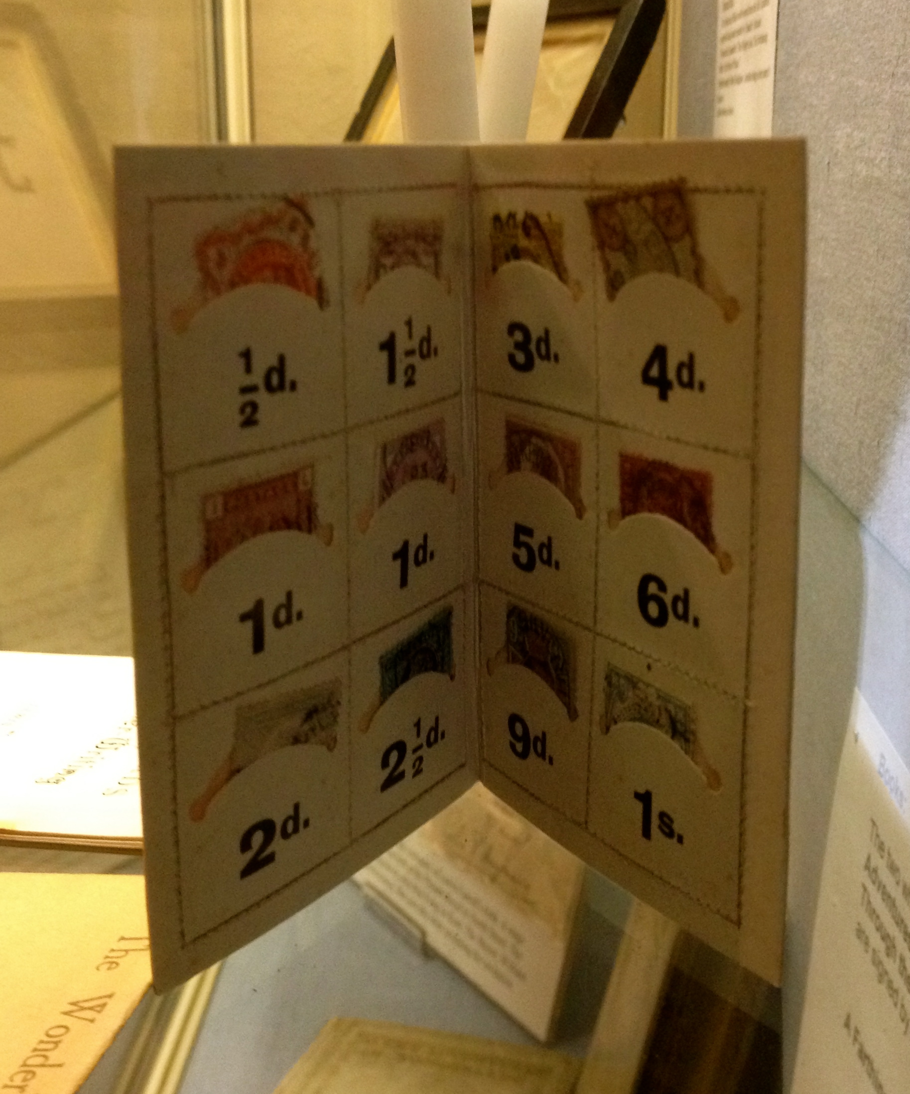 There’s also a display of Alice in Wonderland historic items in Guildford Museum, including a stamp booklet/holder featuring Alice and a biscuit tin decorated with images from Through the Looking Glass, made by Barringer, Wallis and Manners, the firm of a friend of Carroll.