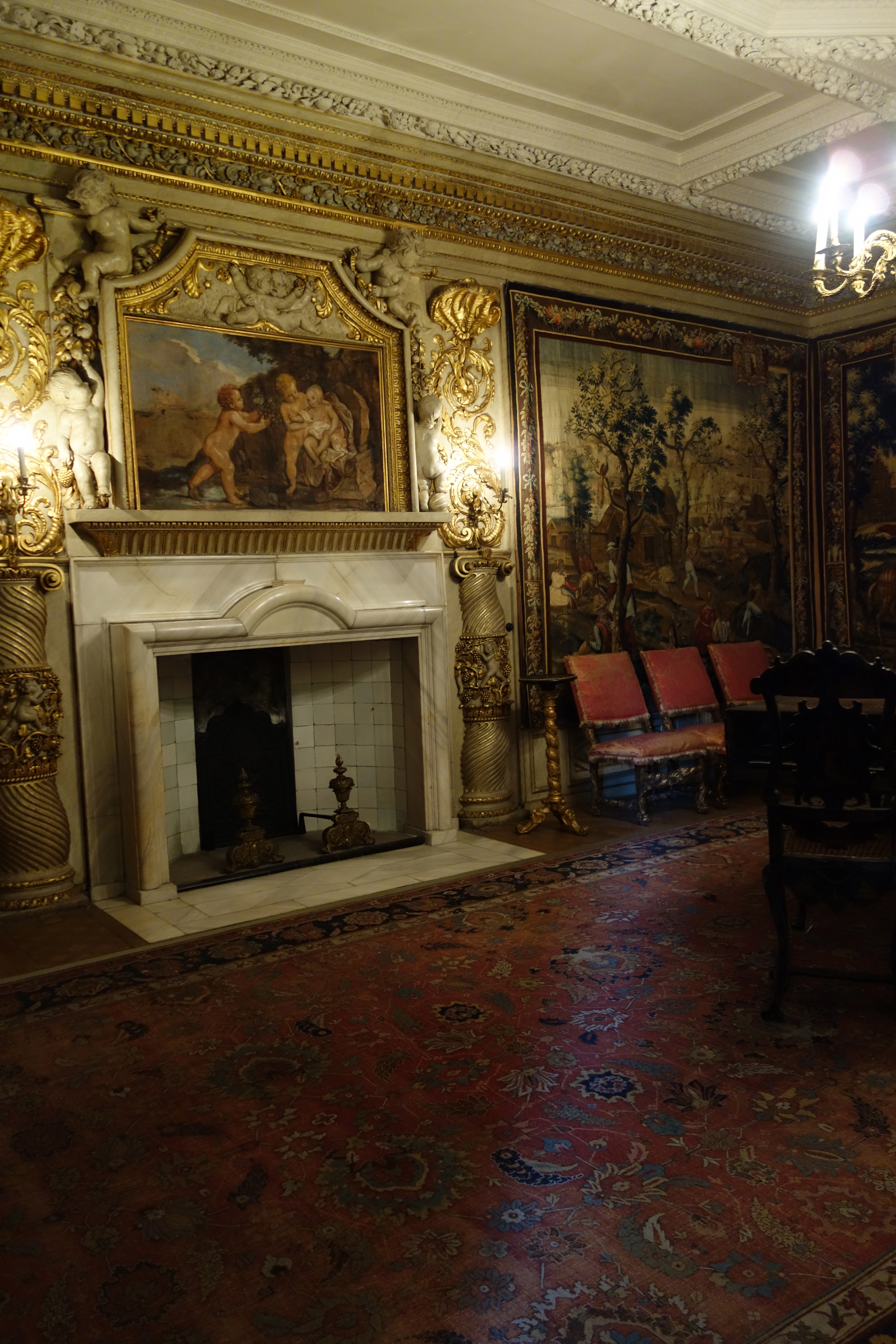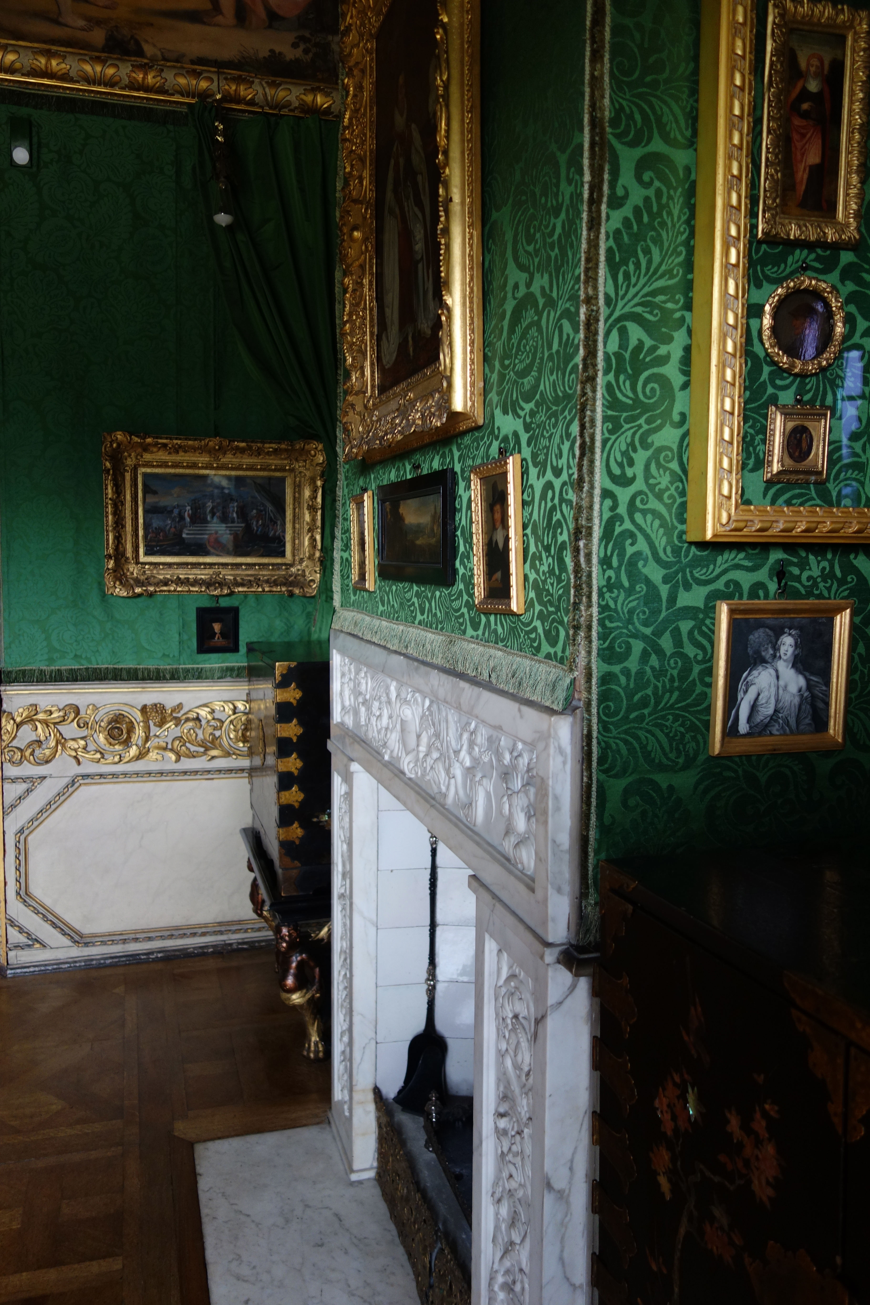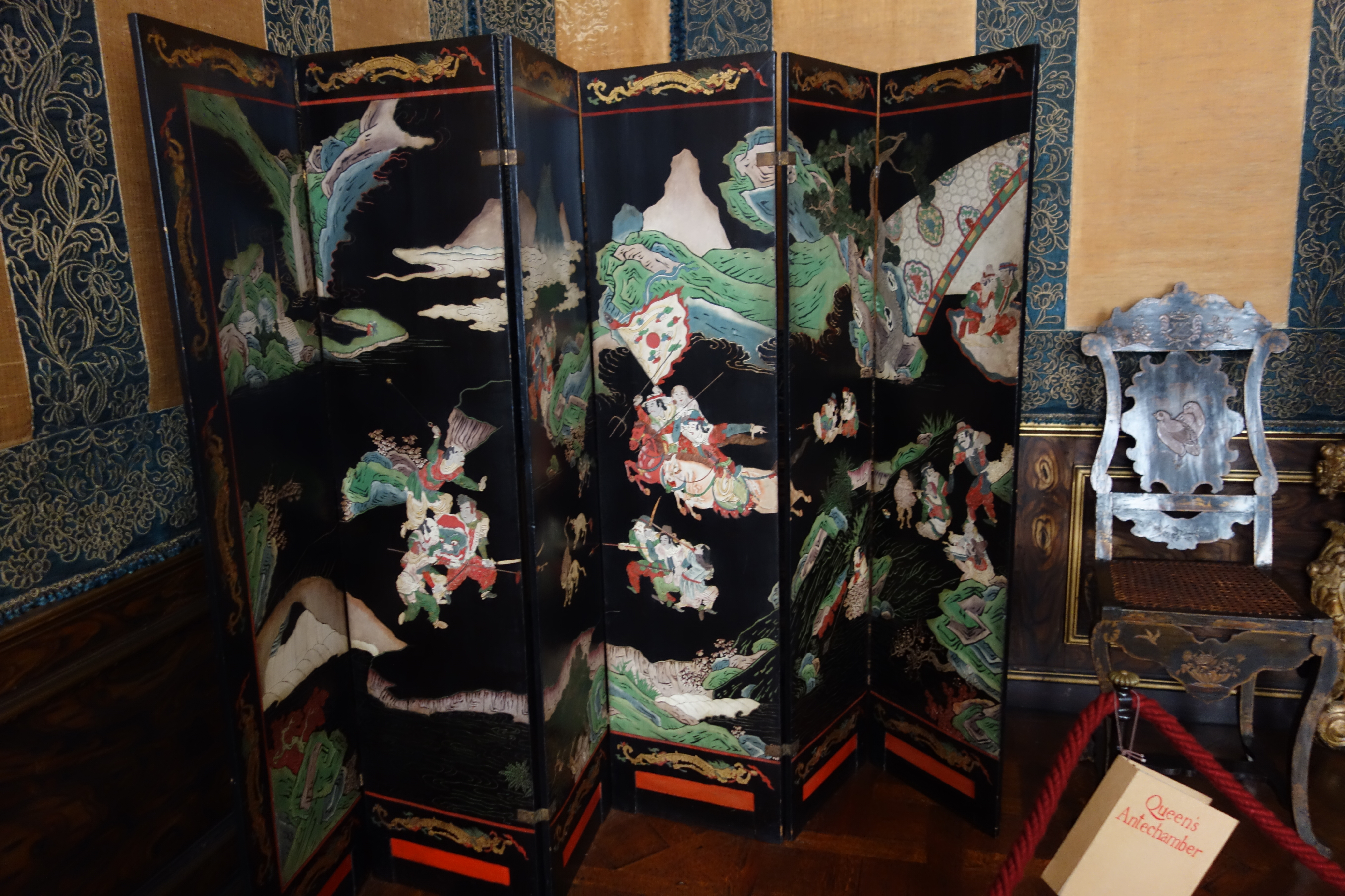 The Queen’s Antechamber had a beautiful marble fireplace and an oriental ornate screen.