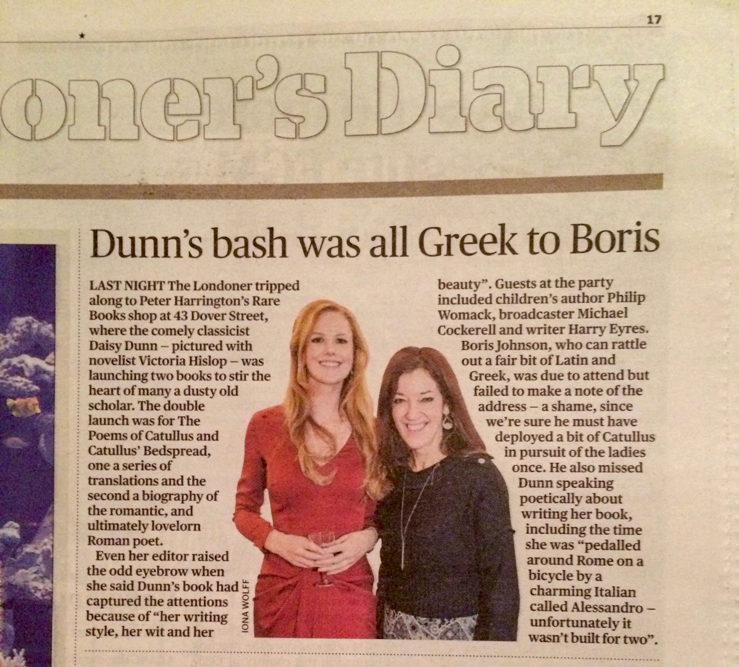 There was an excitable buzz last night at the launch of Daisy Dunn’s debut books: Catullus’ Bedspread: The Life of Rome’s Most Erotic Poet and The Poems of Catullus, at Peter Harrington Rare Books in Dover Street, Mayfair.