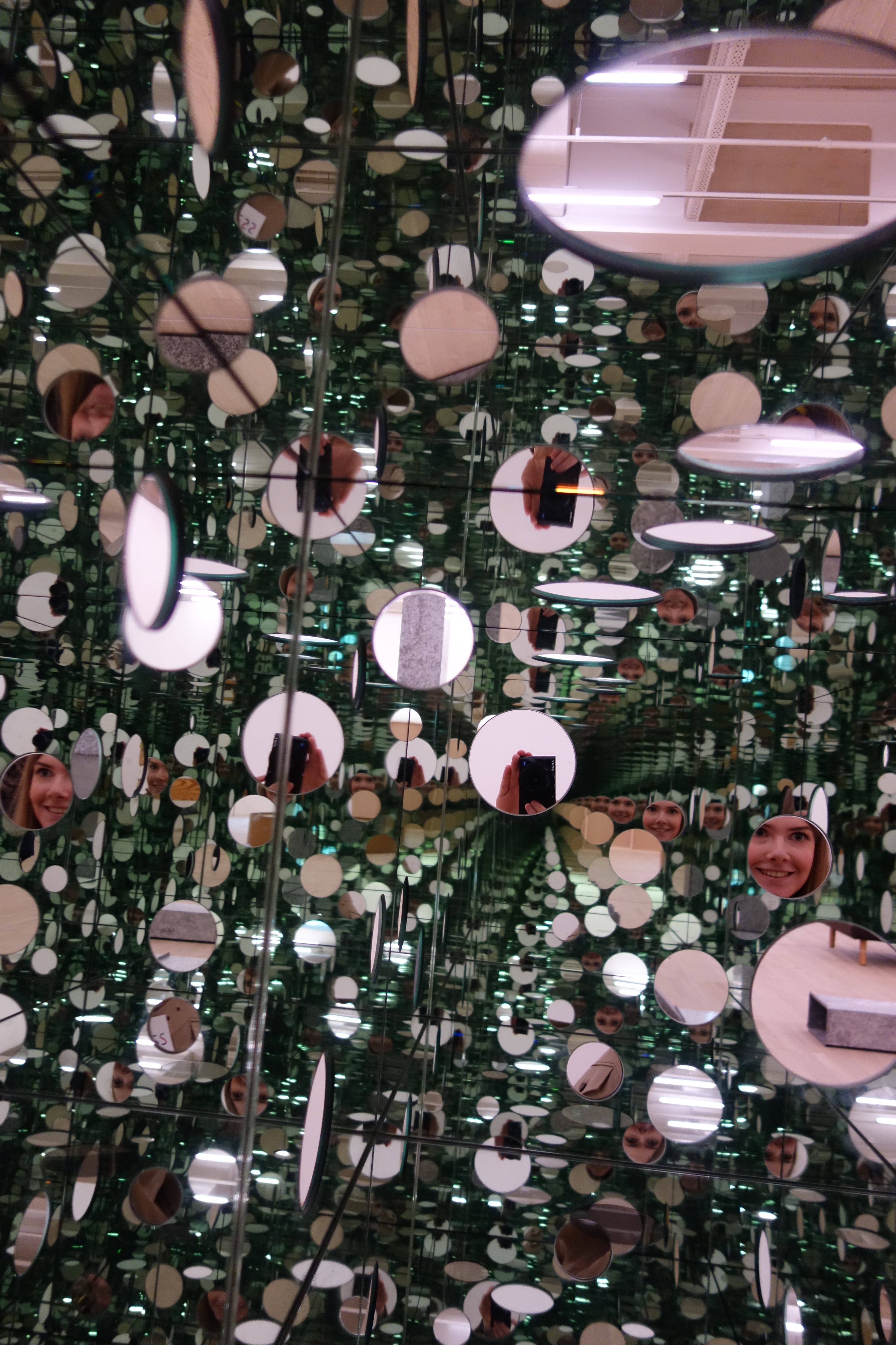 This mirrored cube sculpture called ‘The Passing Winter’ by artist Yayoi Kusama invites you to peer into a circle in the box and see mirrors…
