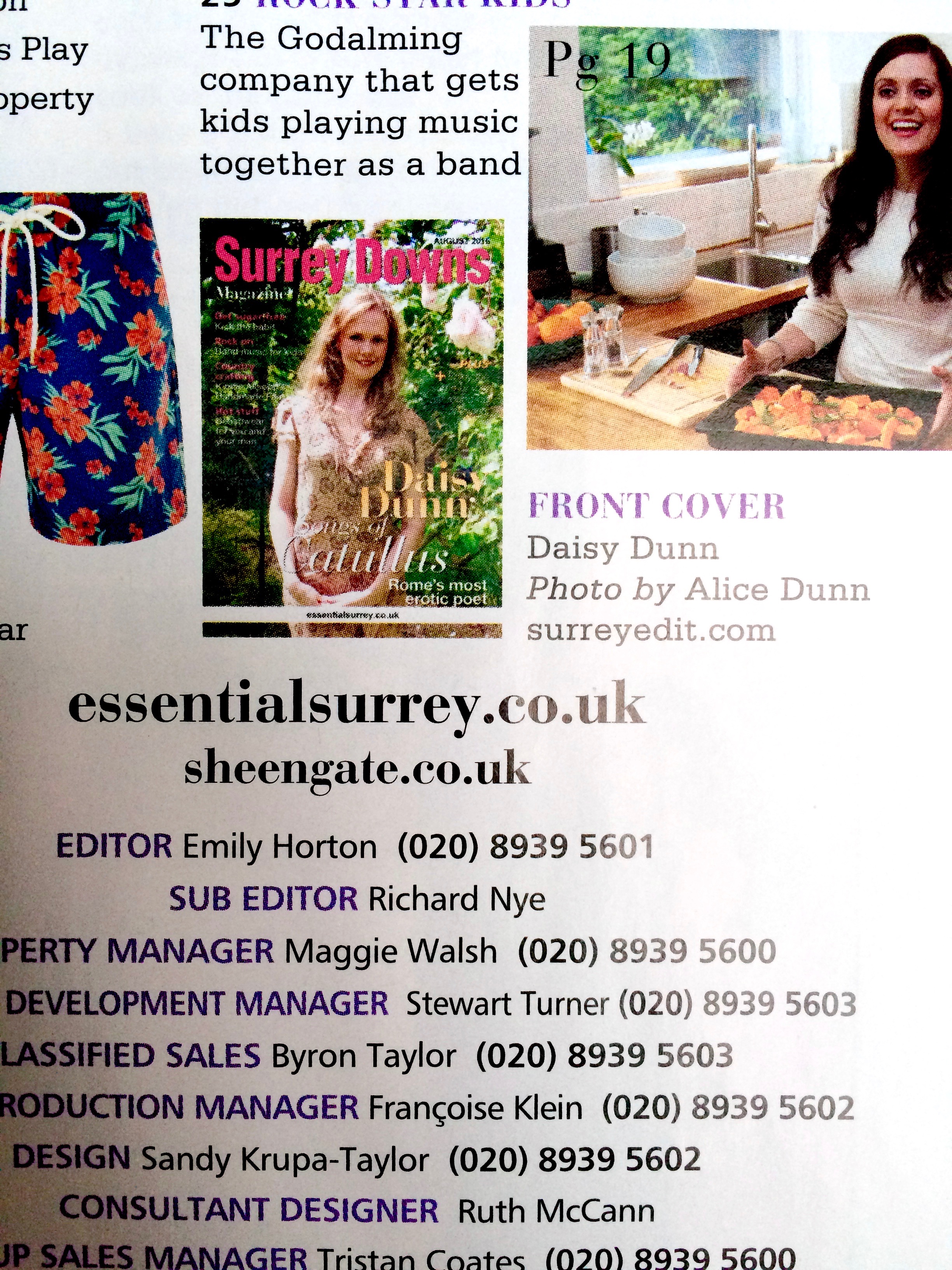 I was commissioned to do the photography for the Surrey Downs magazine August 2016. My photographs were featured on the cover and inside for the feature interview.